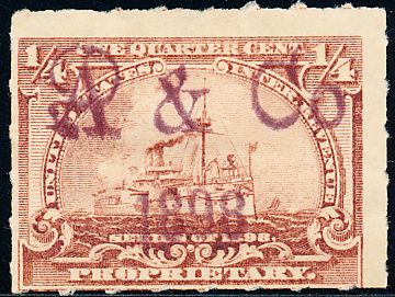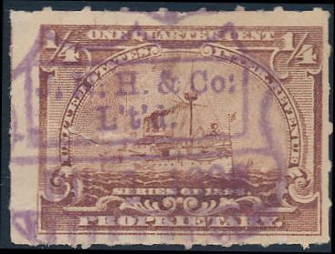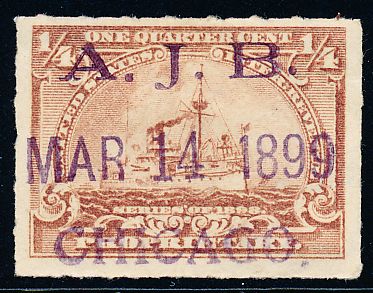 in the index as a printed cancel includes a handstamped line such as a date dbl:[s]A.A.H.&Co.,blk; [hs]date,viol [CJ type 1]  |