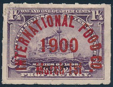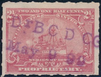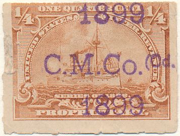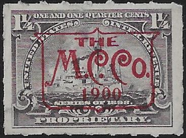 a large stamp having multiple coverage of each stamp was likely applied to a sheet or a rolled stamp was used. [w 13.5-14mm]C.M.CO./Mon.[or Mont] dd, yr,viol,blk,2x  |